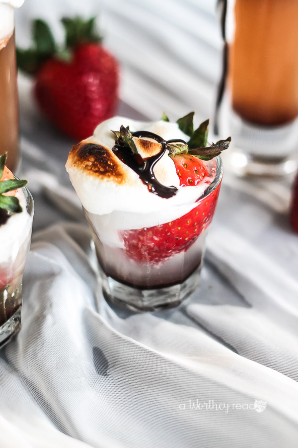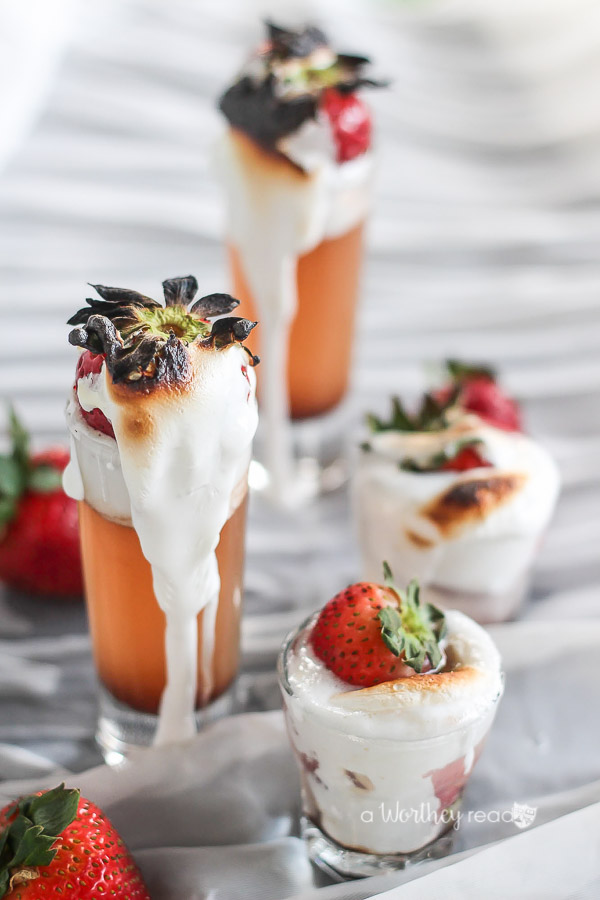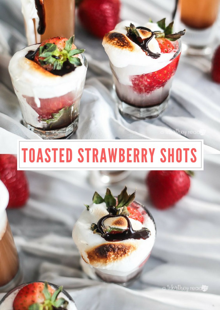 Cheers! Let’s start the party with our incredibly decadent and visually stunning Toasted Strawberry Shots Cocktail. Dang!