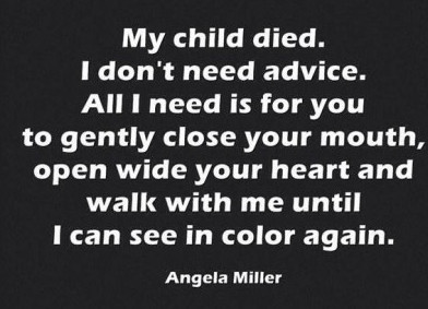 Now… I got that off my chest I want to say this: If I have EVER done any of those things to you during your time of grief, please accept my sincere apology. I was unaware that that I was saying the wrong thing(s). I know now what I will say and not say in the future to people.