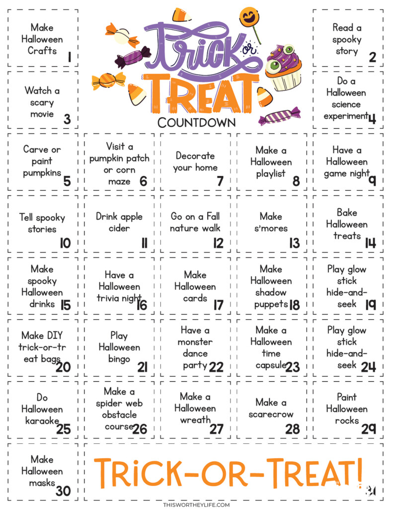 The fun part about using the countdown calendar is that it gives you an idea of something fun to do daily until the night of Halloween arrives!