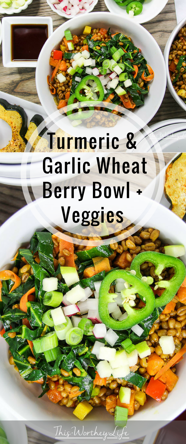Turmeric & Garlic Wheat Berry Bowl + Veggies