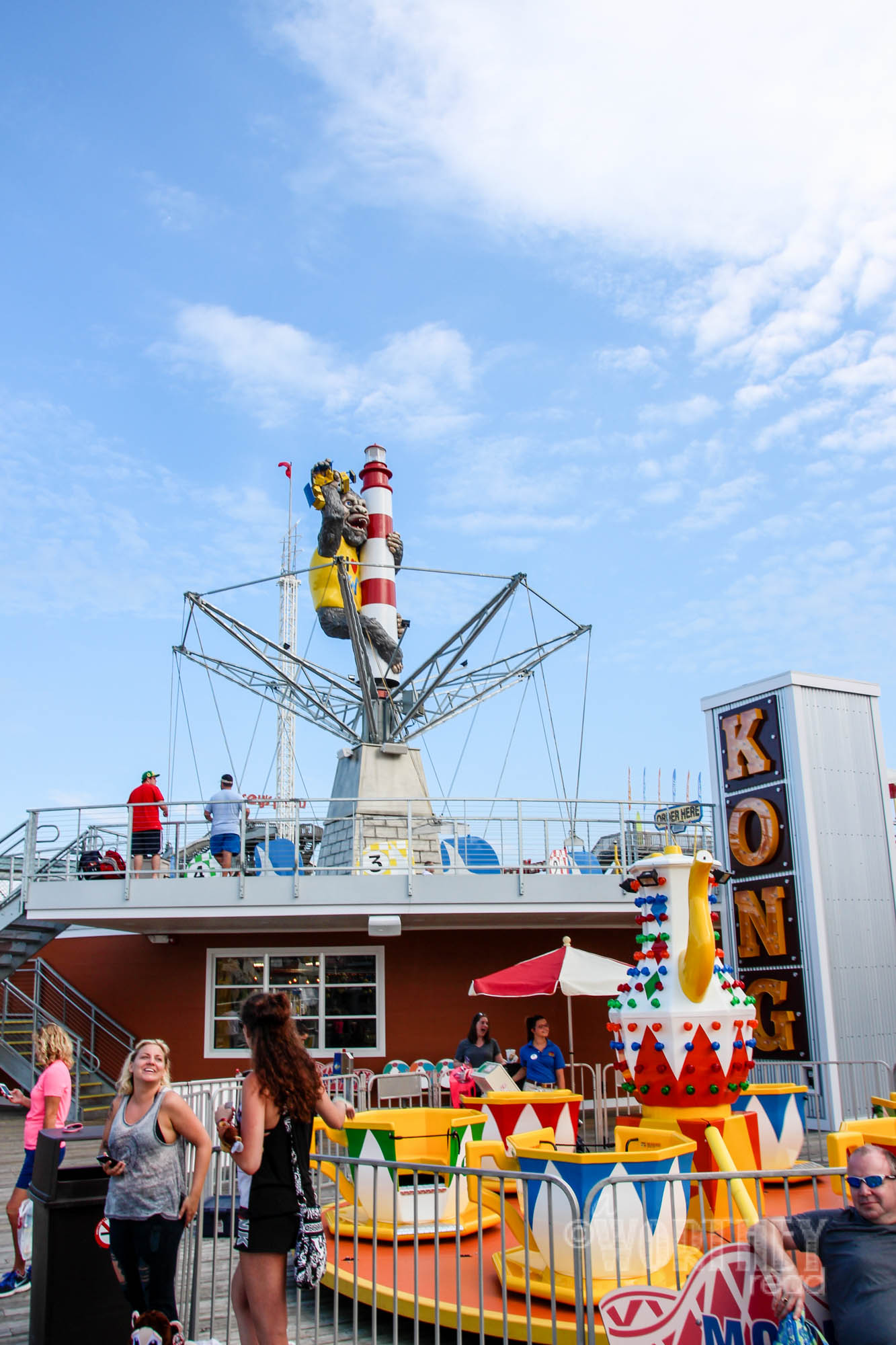 One of the reasons Morey’s Pier is such a popular summer attraction has something to do with all of the rides. Yes, this is the little amusement park that could and does deliver on the fun. I have come to believe that having young children around keeps you young at heart, at least in spirit. The first day here we tackled the giant man-eating (not literally) wooden roller coaster The Great White in short order. Next up, Tat and the boys swallowed their collective fear and rode the exhilarating Sea Serpent. I held her purse and encouraged her every step of the way. Good husband, right? You betcha!