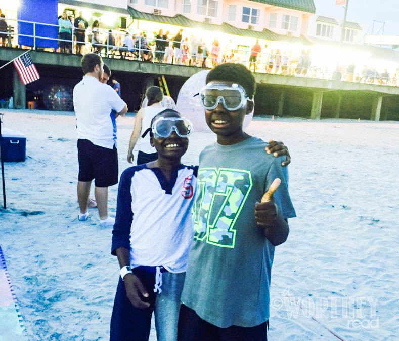 After we rallied the rest of the family we spent a few hours at the beach lounging at the beach. Next, the boys went for a wild ride in a Monster Truck. After this hair-raising adventure, the boys climbed inside ginormous beach balls and crashed into each other (and total strangers). And even with all of the things we did there was still plenty more to do. We’re gonna have to come back for more.