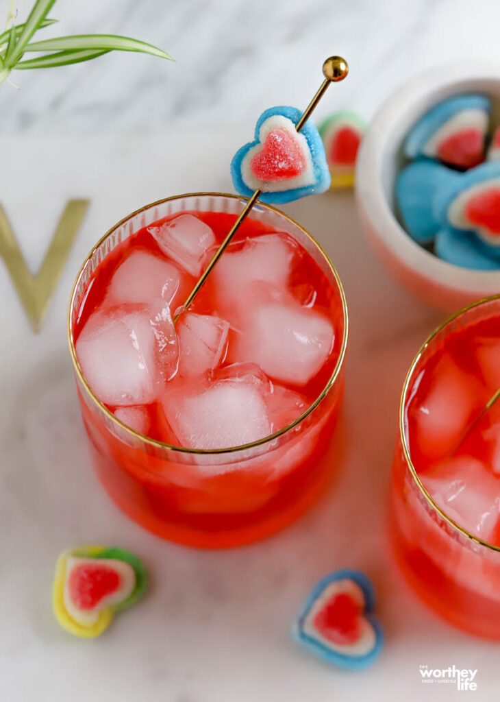 - Valentine’s candy (lollipops, gummies, conversation hearts) for garnish