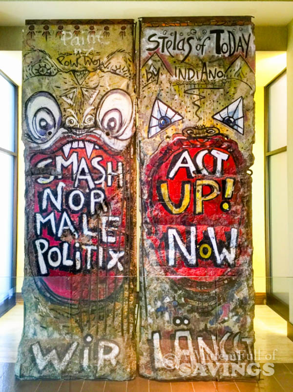 Located near downtown, Hotel Anatole is situated in Market Center area and Design District, and it’s just five minutes from either uptown or downtown. It’s the perfect in between spot if you’re looking to do some sight seeing or just out for a shopping trip with girlfriends. And talk about sightseeing, Hotel Anatole boasts the largest art collection of any hotel in the U.S. Hotel Anatole has curated over 1,000 exotic pieces from around the world, so anyone who appreciates the arts will be sure to enjoy this astonishing collection during their stay. Check the art work below, this bright, colorful and engaging work of art caught my eye, it’s a gorgeous piece depicting the Great Wall in Berlin. {You can view more of their art pieces here}