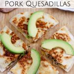 When the skillet is hot place a large flour tortilla into the skillet, add shredded cheese, avocado, chopped pork, tomato, onion then top with more shredded cheese.