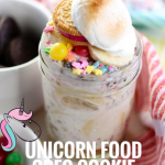 Now, fill the serving glass half-way with the Unicorn food mixture.