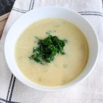 While the soup is steeping, pan-fry in a skillet two cups of Tuscan Kale over med-high heat using a tablespoon of extra virgin olive oil, sea salt, and black pepper.