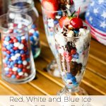 Easy summer dessert involving chocolate, candy, brownies and your favorite ice-cream! Red, White and Blue Ice Cream & Brownie Parfaits.