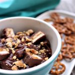 Cut remaining Snickers into bite-size pieces to use as a garnish on top.