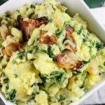 After 10 minutes, remove the lid from the stock pot and roughly smash the potatoes and spinach together.