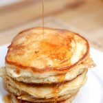 Little by little add the wet ingredients to the dry ingredients, mix until the mixture is just combined. Overbeating will result in tough pancakes, and who wants that?