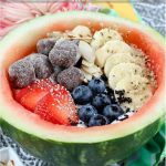 Cut a small watermelon in half and remove the flesh inside (I ate it).