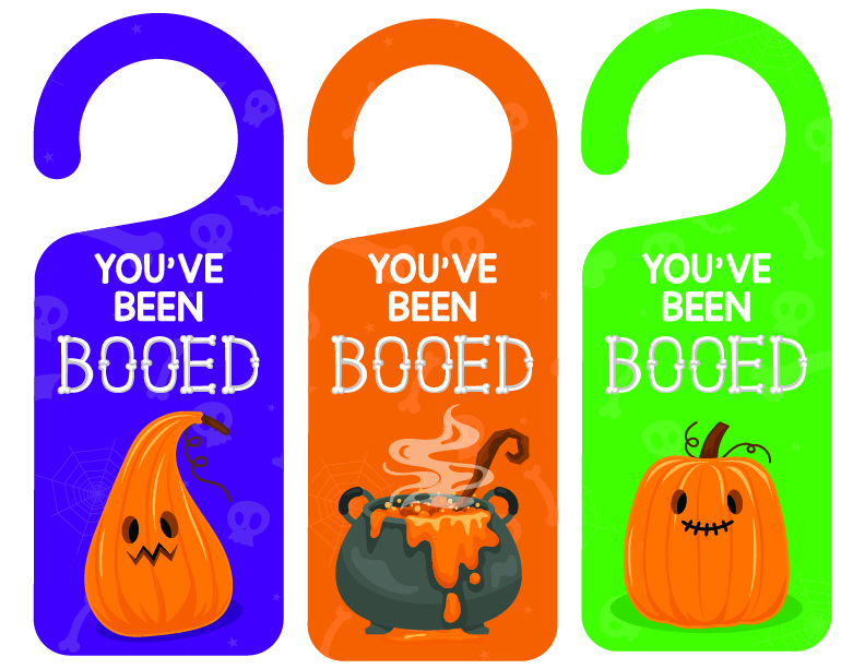 Getting “booed” means that you have a thoughtful gift or treat waiting there on their porch when they get home from trick-or-treating!